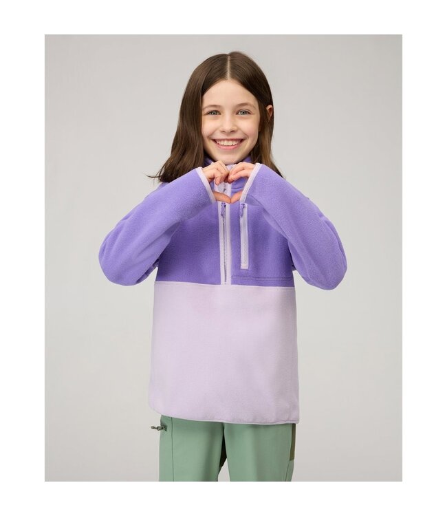 The Waymarker ML Half-Zip Pull keeps young explorers warm through every outdoor adventure. Crafted from 100% recycled polyester, this midlayer delivers reliable insulation and all-day comfort whether kids are hiking trails, climbing trees, or toasting marshmallows by the fire. The soft fleece fabric resists abrasion from scrambles and tumbles, protecting against scrapes during active play. A convenient zippered chest pocket secures small treasures and essentials. Designed for children who discover magic in nature with every step, the Waymarker ML Half-Zip Pull combines warmth, durability, and sustainability—the perfect companion for young adventurers ready to explore.